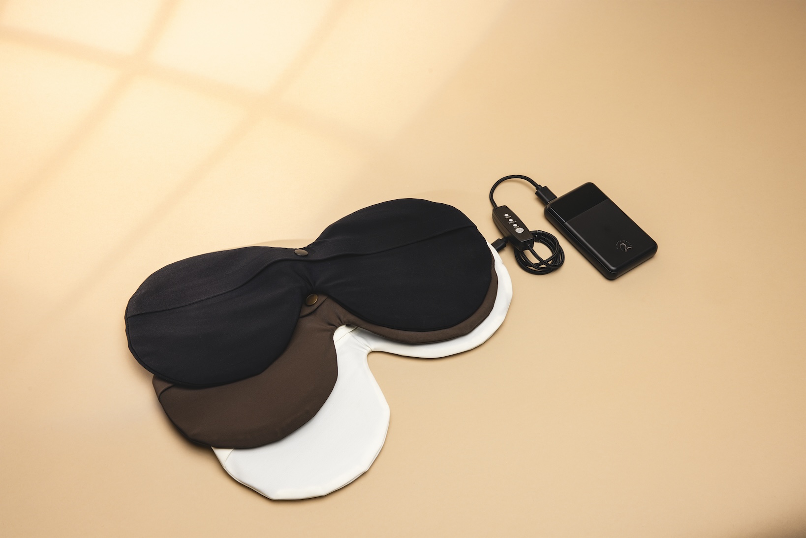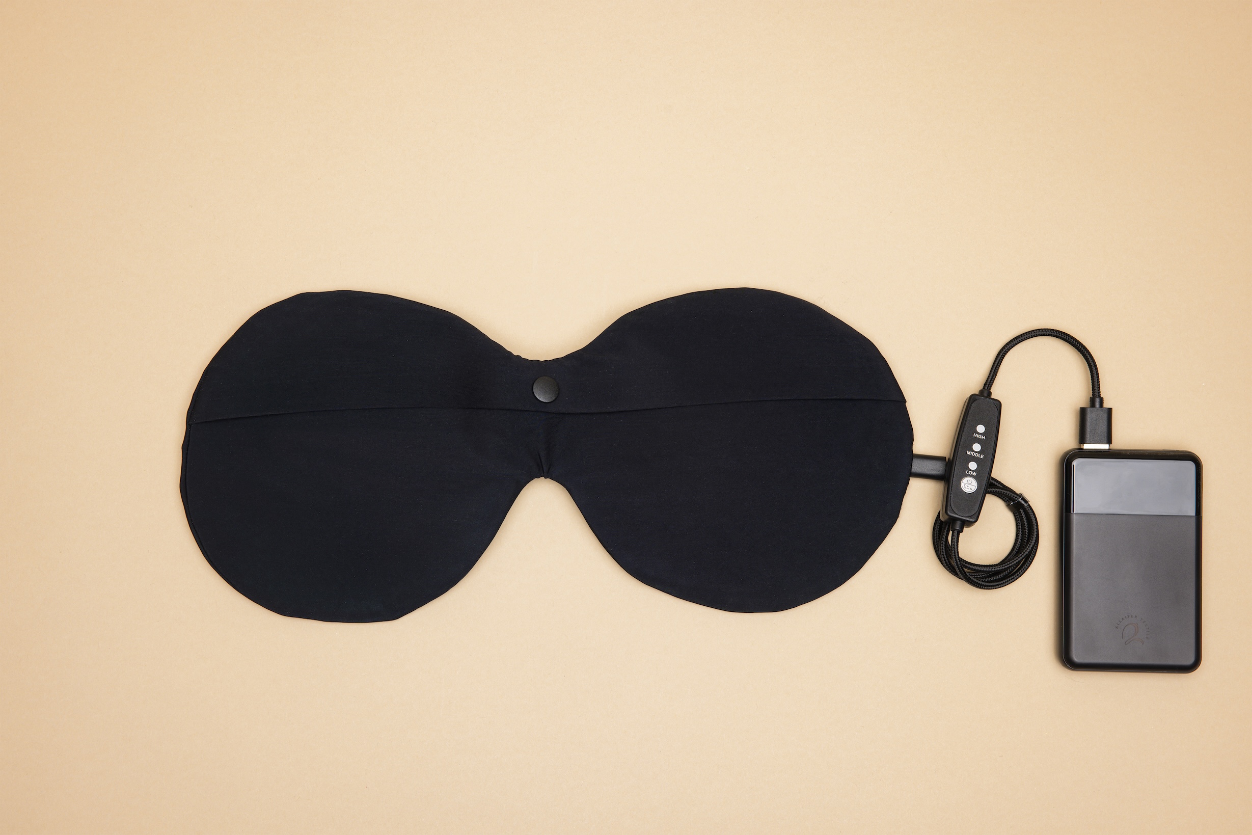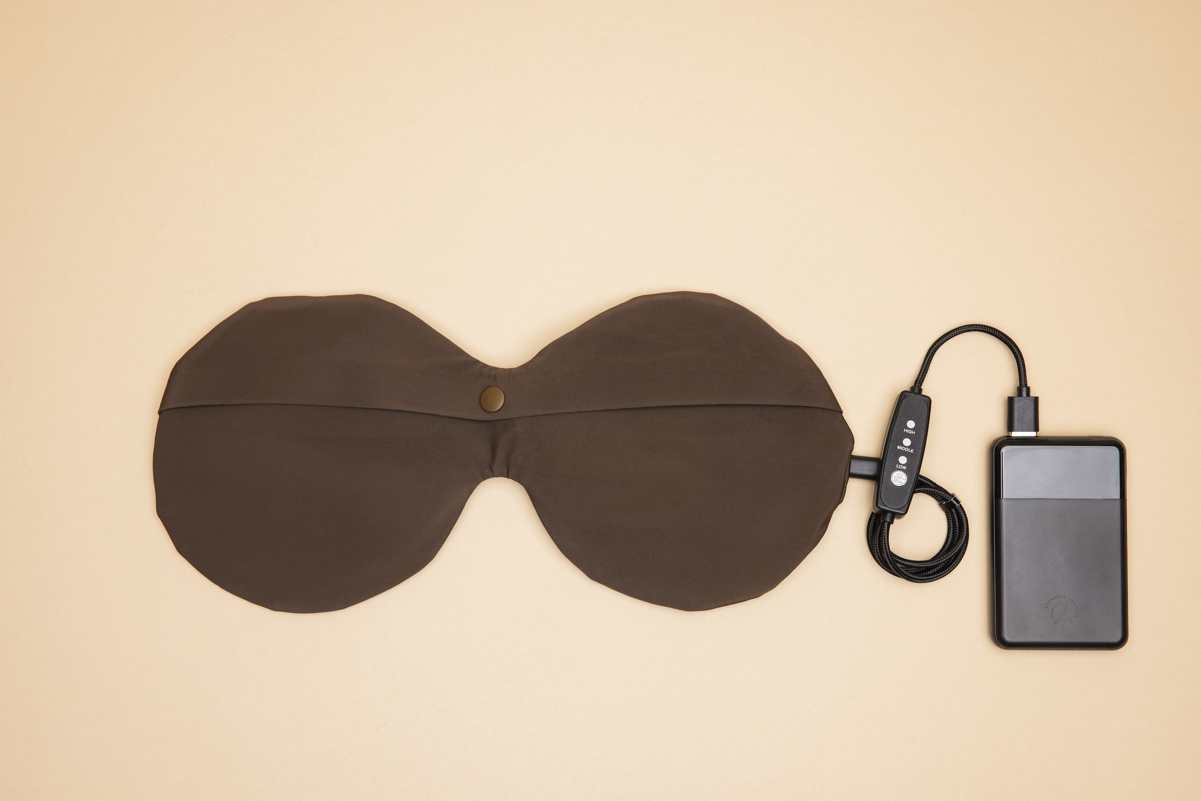 Anslut värmeinläggen via USB-C till inläggen och USB-A till powerbanken. En knapp på kabeln låter dig enkelt styra av/på och justera värmen. Inläggen placeras i din BH – de är så tunna och mjuka att du knappt märker dem.